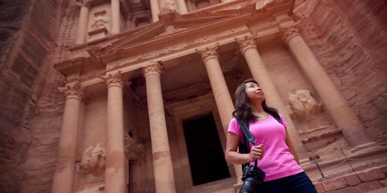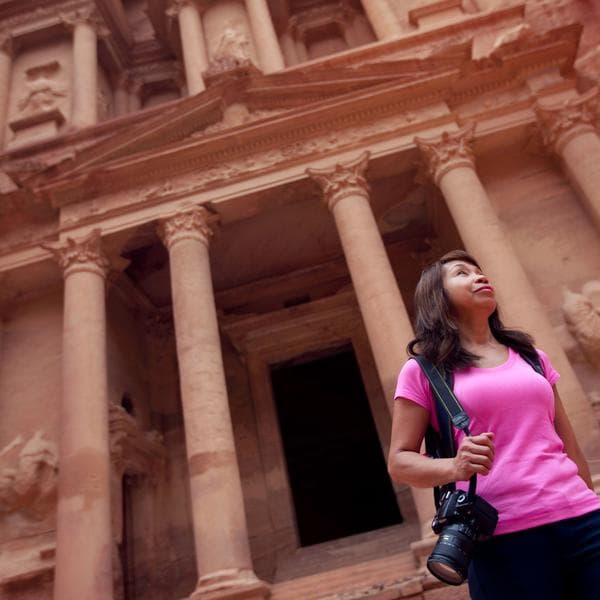 Day 5: PetraBegin your day early with a morning visit to iconic Petra. Head into this 2000-year-old site carved out of the rocky Jordanian desert by the Nabateans and hidden completely until 200 years ago. Pass by the famed Al-Khazneh, known as the treasury of Petra, and gain a comprehensive understanding of this awe-inspiring place as you walk through the area with your guide. Located along trade routes that traversed Egypt, Arabia, and the Mediterranean Sea, Petra was once a hub for the transferring of goods across boundaries and cultures. Visit monuments that include the Pharaoh's Column, the triumphal arch, the amphitheater, and the monastery before proceeding back to Wadi Musa for a free afternoon and evening at your leisure. Who says solo-ish travel can’t have the best of both worlds?